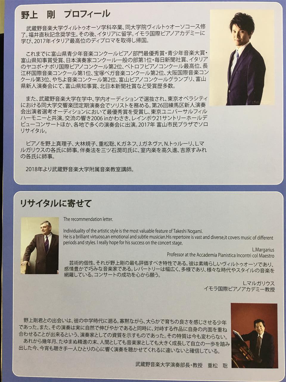 野上 剛 ピアノリサイタル