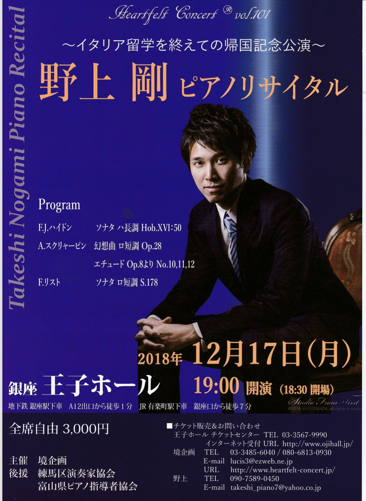 この度、野上 剛 ピアノリサイタルを開くことになりました。